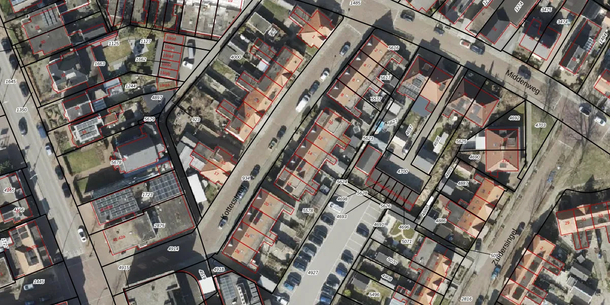 Het perceel waarop Kotterstraat 14 staat heeft een oppervlakte van 1495 m². Dit is een zeer groot perceel. De perceeloppervlakte wordt geregistreerd door het Kadaster. Gedetailleerde informatie over de maten van dit perceel kunt u vinden in het rapport Kadastrale kaart met maatvoering van Kotterstraat 14.
