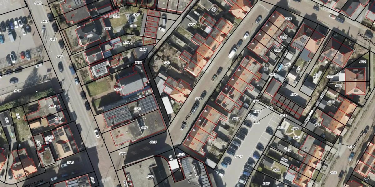 Het perceel waarop Kotterstraat 15 staat heeft een oppervlakte van 1756 m². Dit is een zeer groot perceel. De perceeloppervlakte wordt geregistreerd door het Kadaster. Gedetailleerde informatie over de maten van dit perceel kunt u vinden in het rapport Kadastrale kaart met maatvoering van Kotterstraat 15.