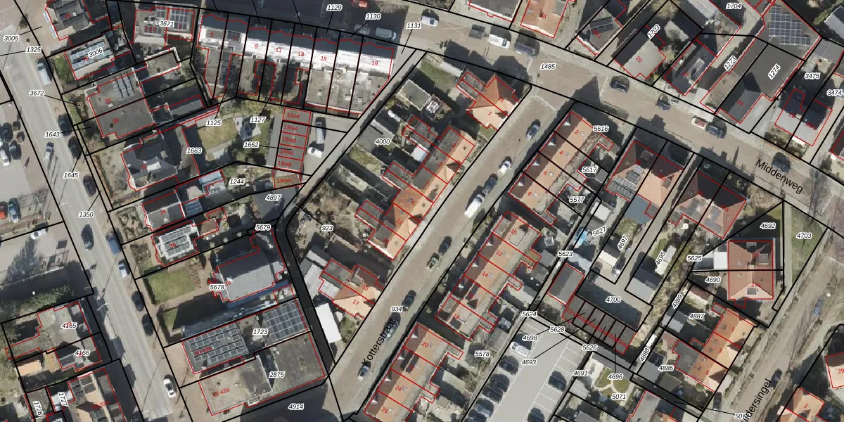 Het perceel waarop Kotterstraat 9 staat heeft een oppervlakte van 1756 m². Dit is een zeer groot perceel. De perceeloppervlakte wordt geregistreerd door het Kadaster. Gedetailleerde informatie over de maten van dit perceel kunt u vinden in het rapport Kadastrale kaart met maatvoering van Kotterstraat 9.