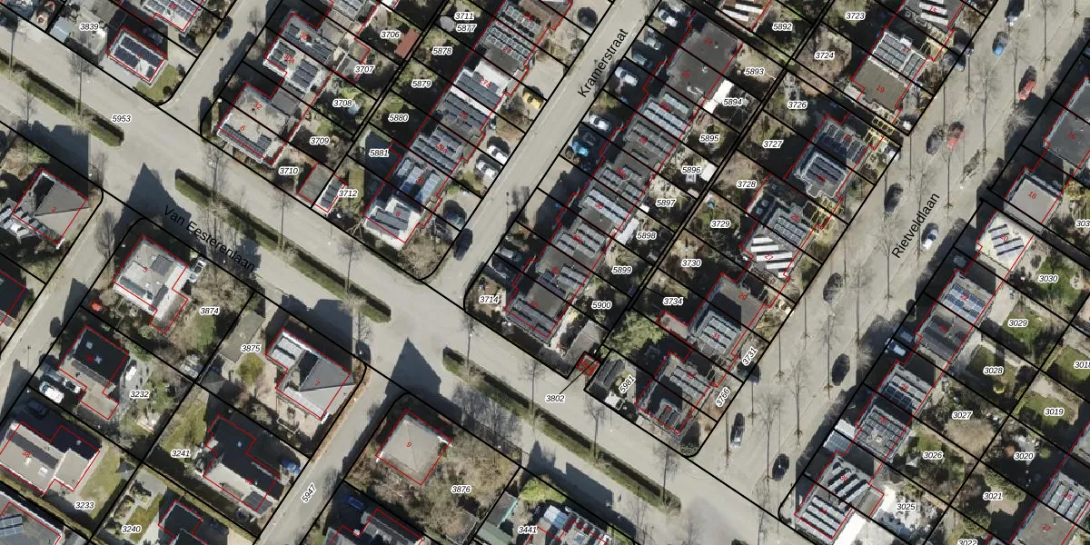 Gebruik de zoekbalk of klik op een perceel voor informatie over de adressen binnen dit perceel.