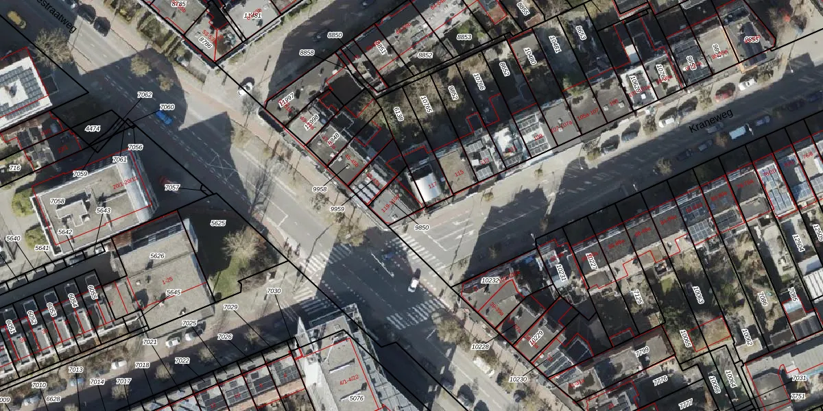 Kraneweg 119-b is gelegen op kadastraal perceel GNG00C9850. Deze kadastrale aanduiding is uniek en wordt gebruikt door het Kadaster om eigendomsrechten en andere zakelijke rechten vast te leggen. Het perceel maakt onderdeel uit van de kadastrale gemeente Groningen.