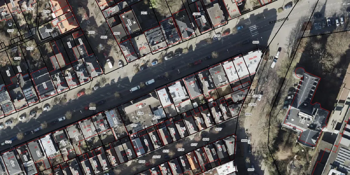 Kraneweg 12 is gelegen op kadastraal perceel GNG00C7435. Deze kadastrale aanduiding is uniek en wordt gebruikt door het Kadaster om eigendomsrechten en andere zakelijke rechten vast te leggen. Het perceel maakt onderdeel uit van de kadastrale gemeente Groningen.
