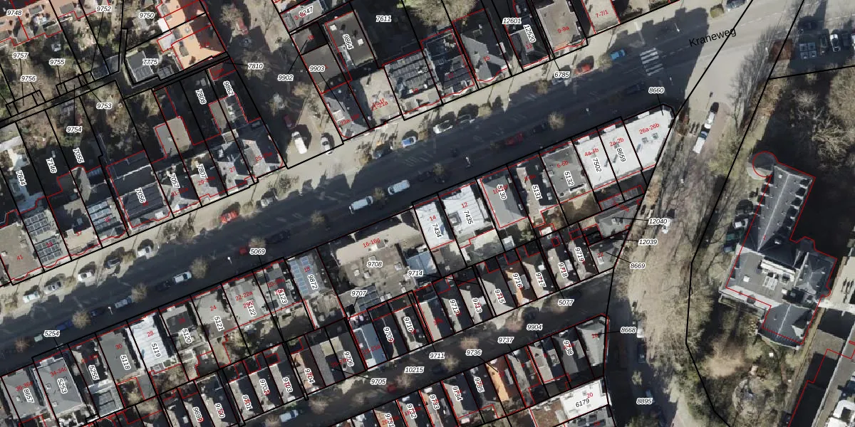 Kraneweg 14 is gelegen op kadastraal perceel GNG00C7434. Deze kadastrale aanduiding is uniek en wordt gebruikt door het Kadaster om eigendomsrechten en andere zakelijke rechten vast te leggen. Het perceel maakt onderdeel uit van de kadastrale gemeente Groningen.