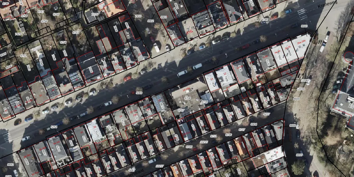 Het perceel waarop Kraneweg 16-f staat heeft een oppervlakte van 565 m². Dit is een groot perceel. De perceeloppervlakte wordt geregistreerd door het Kadaster. Gedetailleerde informatie over de maten van dit perceel kunt u vinden in het rapport Kadastrale kaart met maatvoering van Kraneweg 16-f.