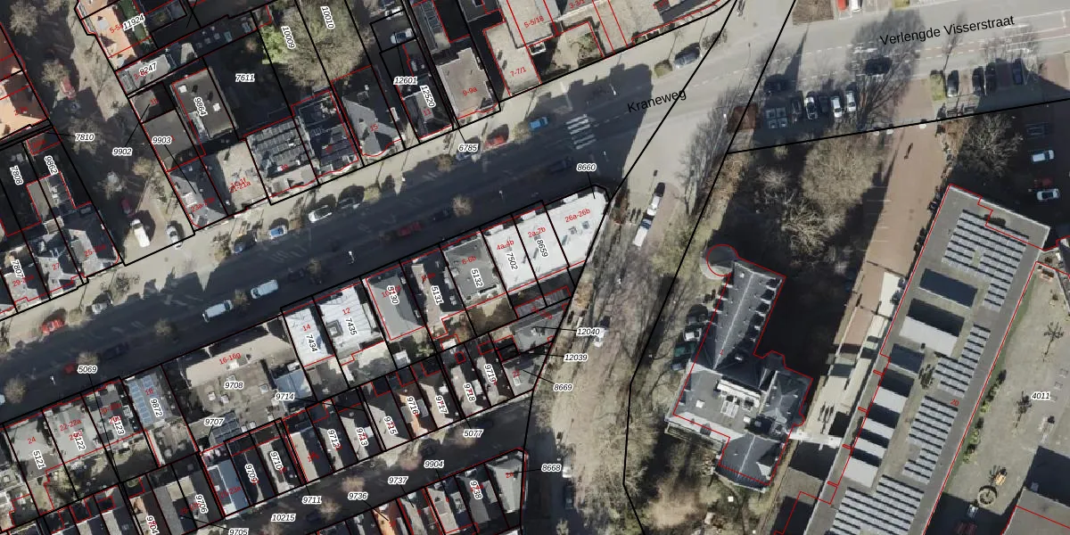 Kraneweg 2-b is gelegen op kadastraal perceel GNG00C8659. Deze kadastrale aanduiding is uniek en wordt gebruikt door het Kadaster om eigendomsrechten en andere zakelijke rechten vast te leggen. Het perceel maakt onderdeel uit van de kadastrale gemeente Groningen.