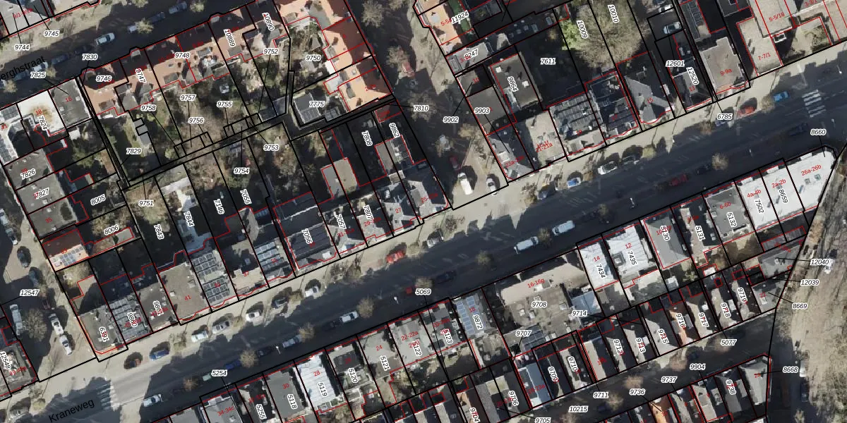 Kraneweg 25 is gelegen op kadastraal perceel GNG00C9862. Deze kadastrale aanduiding is uniek en wordt gebruikt door het Kadaster om eigendomsrechten en andere zakelijke rechten vast te leggen. Het perceel maakt onderdeel uit van de kadastrale gemeente Groningen.
