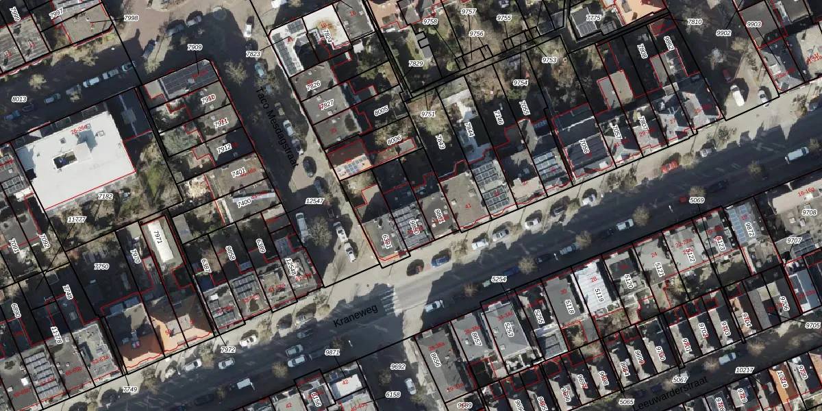 Kraneweg 45-d is gelegen op kadastraal perceel GNG00C9860. Deze kadastrale aanduiding is uniek en wordt gebruikt door het Kadaster om eigendomsrechten en andere zakelijke rechten vast te leggen. Het perceel maakt onderdeel uit van de kadastrale gemeente Groningen.