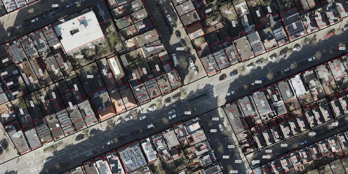 Kraneweg 49 is gelegen op kadastraal perceel GNG00C12548. Deze kadastrale aanduiding is uniek en wordt gebruikt door het Kadaster om eigendomsrechten en andere zakelijke rechten vast te leggen. Het perceel maakt onderdeel uit van de kadastrale gemeente Groningen.