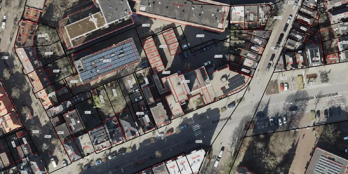 Kraneweg 5-1 is gelegen op kadastraal perceel GNG00C12154. Deze kadastrale aanduiding is uniek en wordt gebruikt door het Kadaster om eigendomsrechten en andere zakelijke rechten vast te leggen. Het perceel maakt onderdeel uit van de kadastrale gemeente Groningen.