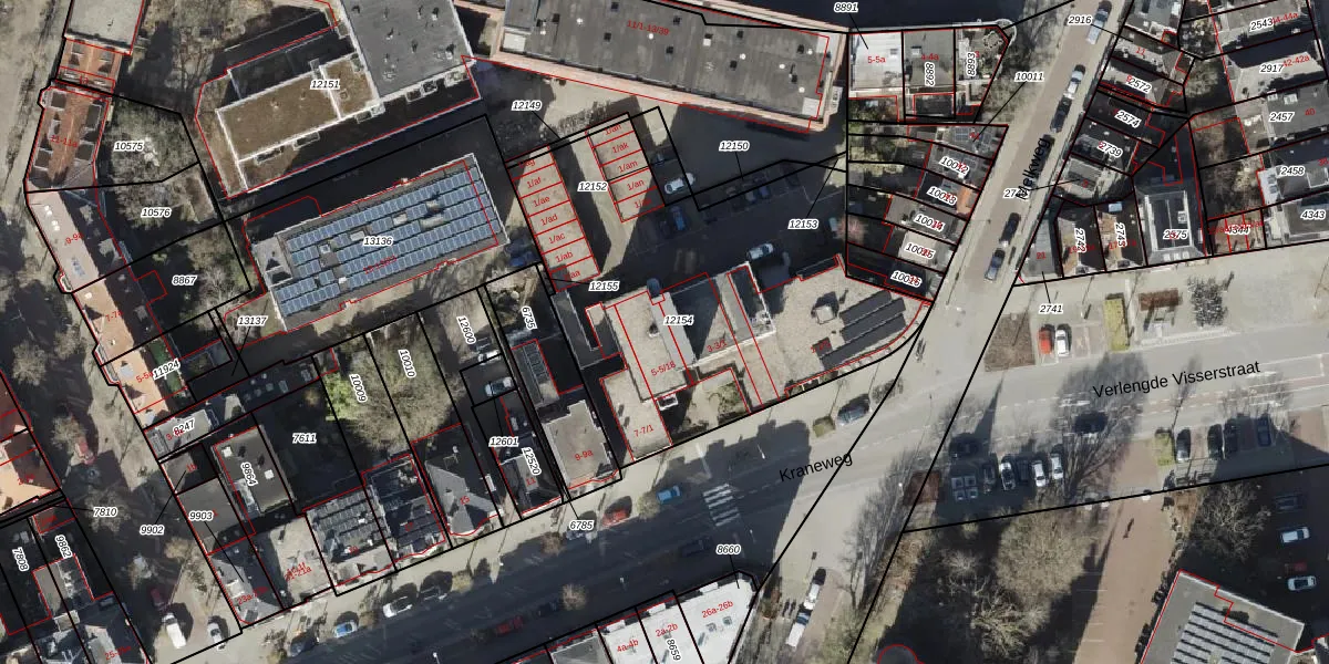 Kraneweg 5-13 is gelegen op kadastraal perceel GNG00C12154. Deze kadastrale aanduiding is uniek en wordt gebruikt door het Kadaster om eigendomsrechten en andere zakelijke rechten vast te leggen. Het perceel maakt onderdeel uit van de kadastrale gemeente Groningen.