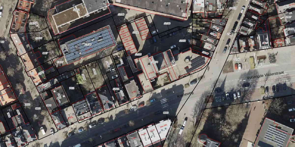 Kraneweg 5-4 is gelegen op kadastraal perceel GNG00C12154. Deze kadastrale aanduiding is uniek en wordt gebruikt door het Kadaster om eigendomsrechten en andere zakelijke rechten vast te leggen. Het perceel maakt onderdeel uit van de kadastrale gemeente Groningen.