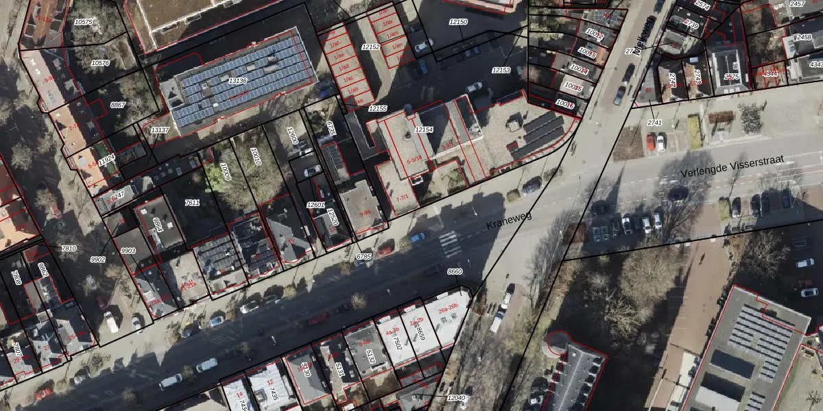 Kraneweg 7-1 is gelegen op kadastraal perceel GNG00C12154. Deze kadastrale aanduiding is uniek en wordt gebruikt door het Kadaster om eigendomsrechten en andere zakelijke rechten vast te leggen. Het perceel maakt onderdeel uit van de kadastrale gemeente Groningen.