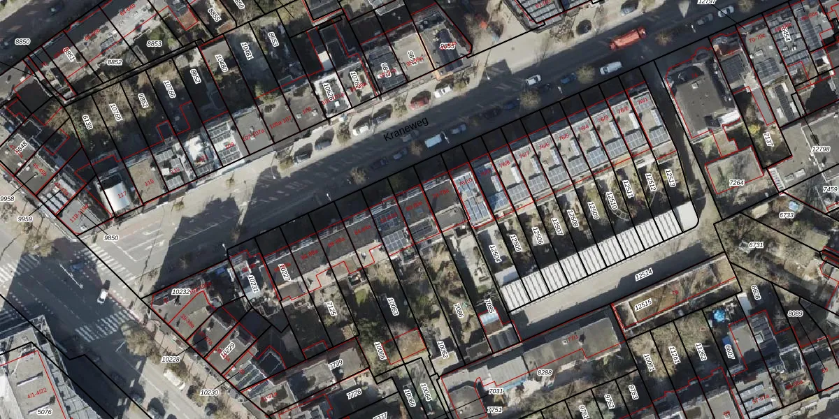Het perceel waarop Kraneweg 80-c staat heeft een oppervlakte van 339 m². Dit is een groot perceel. De perceeloppervlakte wordt geregistreerd door het Kadaster. Gedetailleerde informatie over de maten van dit perceel kunt u vinden in het rapport Kadastrale kaart met maatvoering van Kraneweg 80-c.