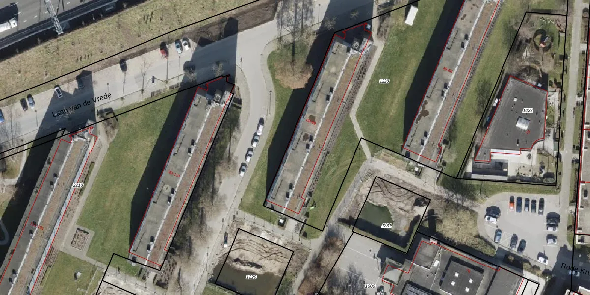 Laan van de Vrede 72 is gelegen op kadastraal perceel GNG00R1228. Deze kadastrale aanduiding is uniek en wordt gebruikt door het Kadaster om eigendomsrechten en andere zakelijke rechten vast te leggen. Het perceel maakt onderdeel uit van de kadastrale gemeente Groningen.