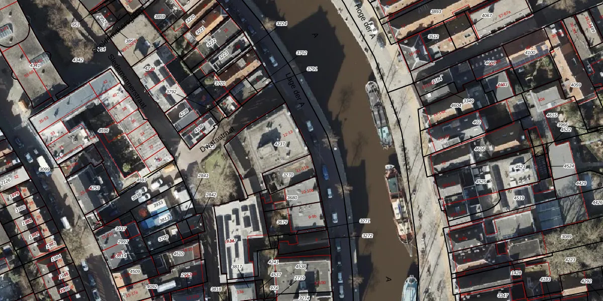 Het perceel waarop het adres ligt is GNG00-K-4237. De afkorting 'GNG00' staat voor kadastrale gemeente Groningen. Het perceel is kleiner dan gemiddeld in Groningen. Het perceel is 444 m² groot, terwijl het gemiddelde ligt op 770,7 m². Het grootste perceel in de kadastrale gemeente is 31,8 ha. Het kleinste perceel heeft een oppervlakte van 0 m². Op het perceel zijn 40 adressen aanwezig. In de Basisregistratie Kadaster (BRK) werden de grenzen van het perceel geregistreerd op 20-06-2003.
