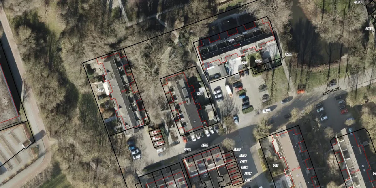 Lichtboei 104 is gelegen op kadastraal perceel GNG01AC734. Deze kadastrale aanduiding is uniek en wordt gebruikt door het Kadaster om eigendomsrechten en andere zakelijke rechten vast te leggen. Het perceel maakt onderdeel uit van de kadastrale gemeente Groningen.
