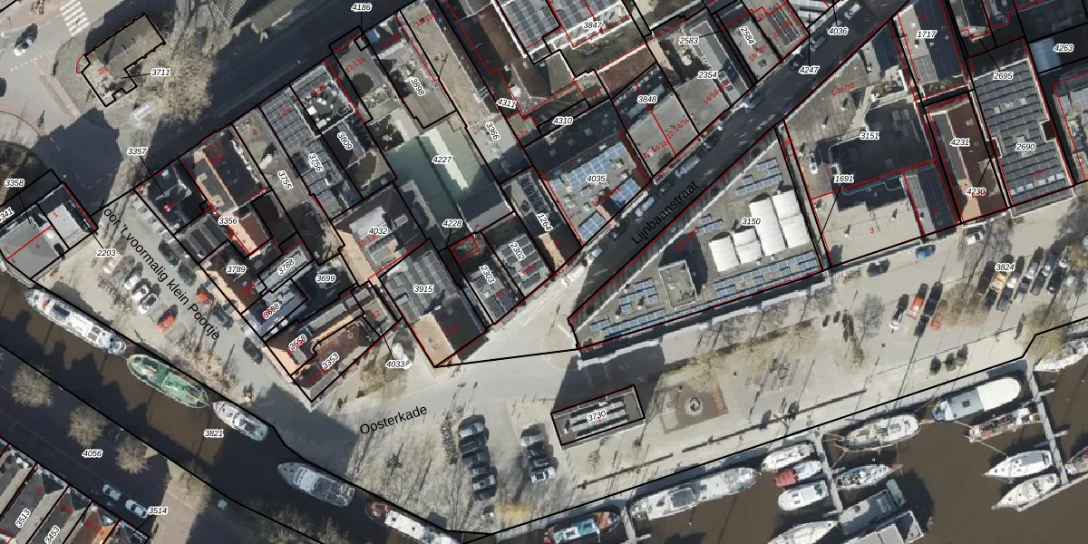 Het adres is gelegen op perceel 2302 in de sectie H en de kadastrale gemeente Groningen. De kadastrale aanduiding is aldus GNG00-H-2302. De gemiddelde perceelgrootte in Groningen is 770,65 m². Dit perceel is kleiner: de perceeloppervlakte bedraagt 112 m². De grootste perceeloppervlakte in de kadastrale gemeente is 31,8 ha. De kleinste oppervlakte bedraagt 0 m². Op het perceel zijn 2 adressen aanwezig. In de Basisregistratie Kadaster (BRK) werden de grenzen van het perceel geregistreerd op 07-01-2004.
