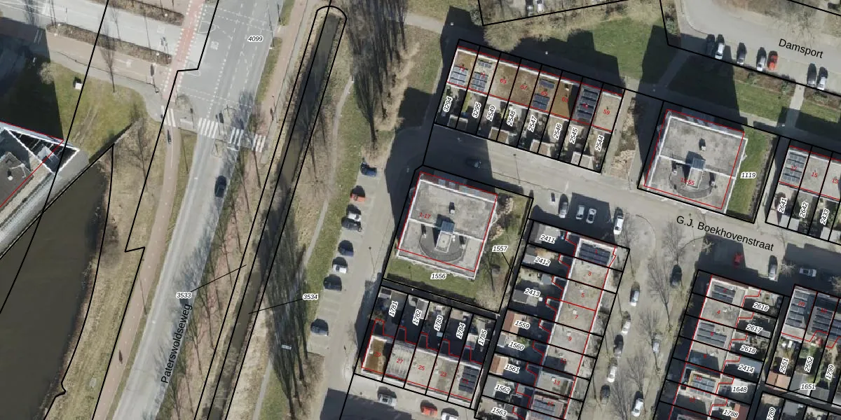 Het adres is gelegen op perceel 1556 in de sectie O en de kadastrale gemeente Helpman. De kadastrale aanduiding is aldus HMN02-O-1556. Het perceel is kleiner dan gemiddeld in Helpman. Het perceel is 825 m² groot, terwijl het gemiddelde ligt op 1111,17 m². Het kleinste perceel in de kadastrale gemeente is 0 m² groot. De grootste perceeloppervlakte is 20,4 ha. Op het perceel liggen in totaal 16 adressen. De laatste wijziging in het de Basisregistratie Kadaster (BRK) was op 13-01-2009.