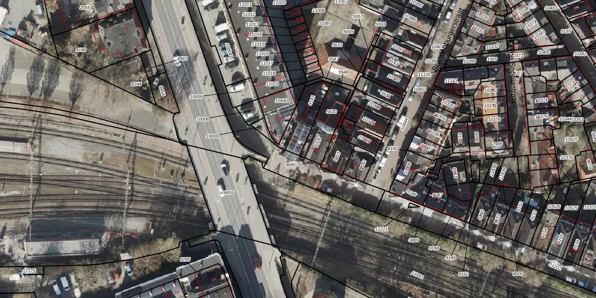 Het adres is gelegen op perceel 9141 in de sectie B en de kadastrale gemeente Groningen. De kadastrale aanduiding is aldus GNG00-B-9141. De gemiddelde perceelgrootte in Groningen is 772,77 m². Dit perceel is kleiner: de perceeloppervlakte bedraagt 197 m². De grootste perceeloppervlakte in de kadastrale gemeente is 31,8 ha. De kleinste oppervlakte bedraagt 0 m². Er zijn 6 adressen aanwezig op het perceel. In de Basisregistratie Kadaster (BRK) werden de grenzen van het perceel geregistreerd op 23-07-2003.