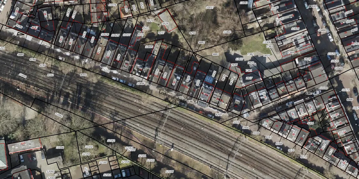 Het perceel waarop Lodewijkstraat 20 staat heeft een oppervlakte van 120 m². Dit is een middelgroot perceel. De perceeloppervlakte wordt geregistreerd door het Kadaster. Gedetailleerde informatie over de maten van dit perceel kunt u vinden in het rapport Kadastrale kaart met maatvoering van Lodewijkstraat 20.