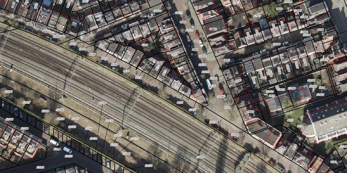 Het perceel waarop Lodewijkstraat 33 staat heeft een oppervlakte van 55 m². Dit is een klein perceel. De perceeloppervlakte wordt geregistreerd door het Kadaster. Gedetailleerde informatie over de maten van dit perceel kunt u vinden in het rapport Kadastrale kaart met maatvoering van Lodewijkstraat 33.