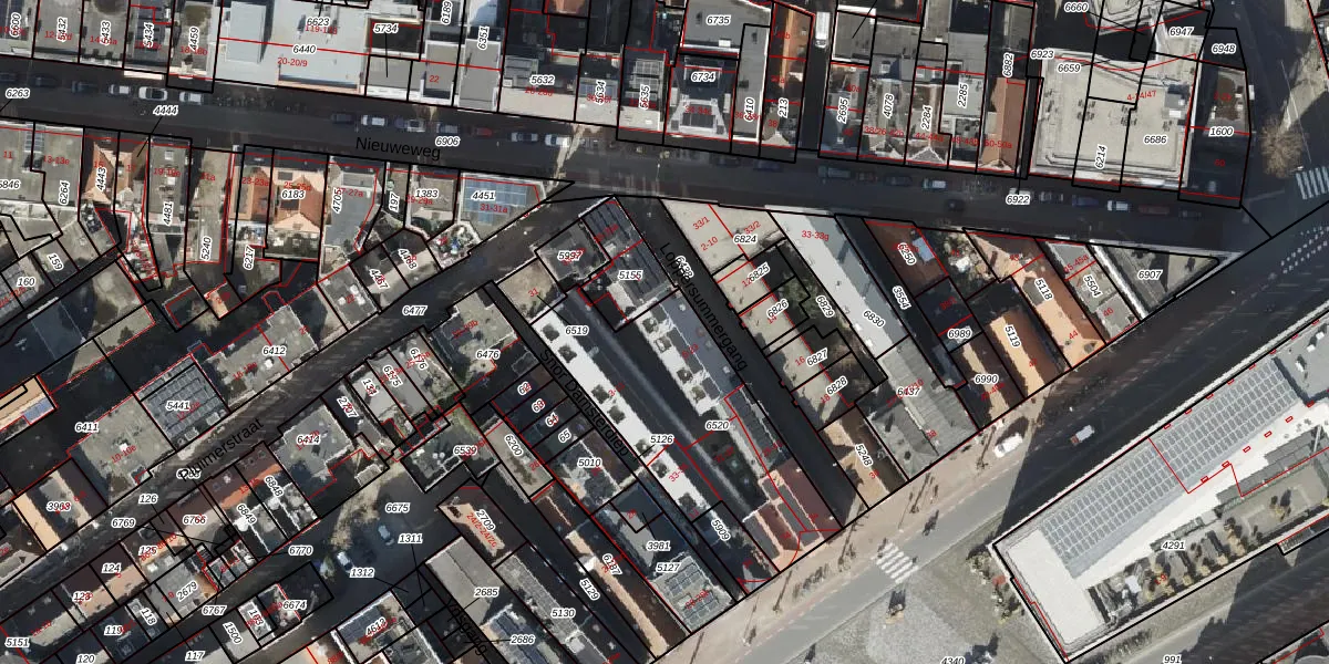 Het adres is gelegen op perceel 6520 in de sectie G en de kadastrale gemeente Groningen. De kadastrale aanduiding is aldus GNG00-G-6520. De gemiddelde perceeloppervlakte in de kadastrale gemeente Groningen is 771,43 m². Dit perceel is met zijn 818 m² dus groter dan gemiddeld. Het kleinste perceel in de kadastrale gemeente is 0 m² groot. De grootste perceeloppervlakte is 31,8 ha. Op het perceel liggen in totaal 24 adressen. De huidige grenzen van het perceel zijn digitaal in de Basisregistratie Kadaster (BRK) geregistreerd op 09-07-2003.