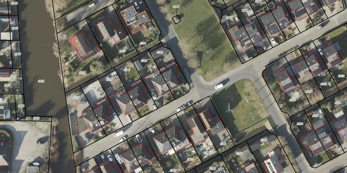 Het perceel waarop Möllerstraat 12 staat heeft een oppervlakte van 350 m². Dit is een groot perceel. De perceeloppervlakte wordt geregistreerd door het Kadaster. Gedetailleerde informatie over de maten van dit perceel kunt u vinden in het rapport Kadastrale kaart met maatvoering van Möllerstraat 12.