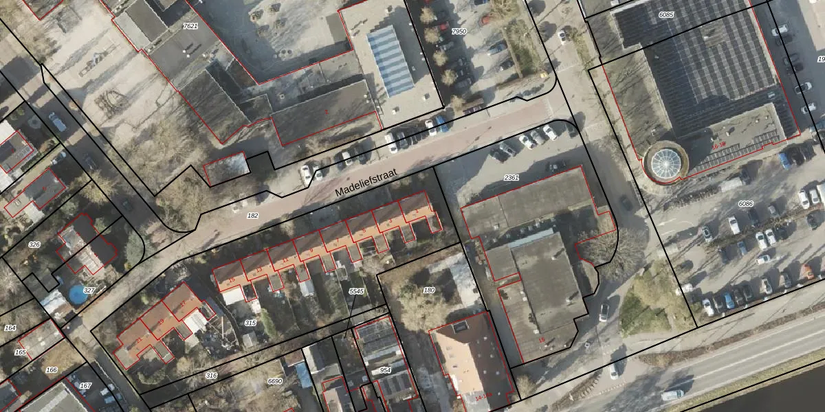 Het perceel waarop Madeliefstraat 1 staat heeft een oppervlakte van 2165 m². Dit is een zeer groot perceel. De perceeloppervlakte wordt geregistreerd door het Kadaster. Gedetailleerde informatie over de maten van dit perceel kunt u vinden in het rapport Kadastrale kaart met maatvoering van Madeliefstraat 1.