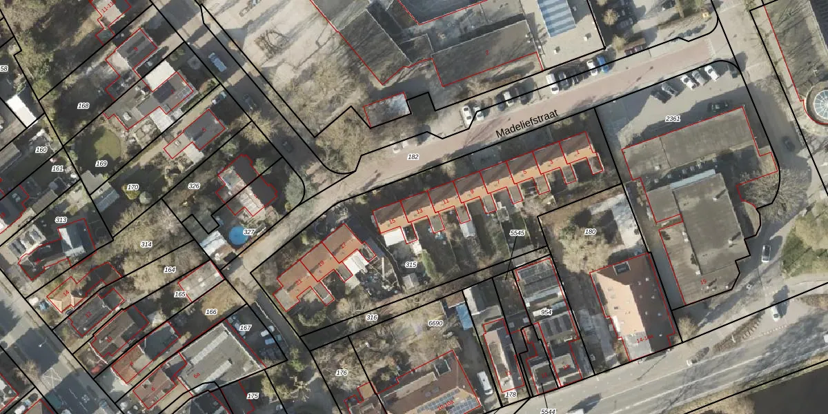 Het perceel waarop Madeliefstraat 13 staat heeft een oppervlakte van 2165 m². Dit is een zeer groot perceel. De perceeloppervlakte wordt geregistreerd door het Kadaster. Gedetailleerde informatie over de maten van dit perceel kunt u vinden in het rapport Kadastrale kaart met maatvoering van Madeliefstraat 13.