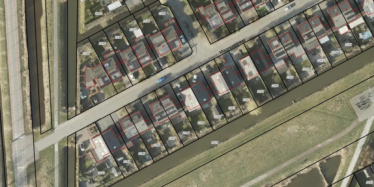 Het perceel waarop Magnusstraat 13 staat heeft een oppervlakte van 308 m². Dit is een groot perceel. De perceeloppervlakte wordt geregistreerd door het Kadaster. Gedetailleerde informatie over de maten van dit perceel kunt u vinden in het rapport Kadastrale kaart met maatvoering van Magnusstraat 13.