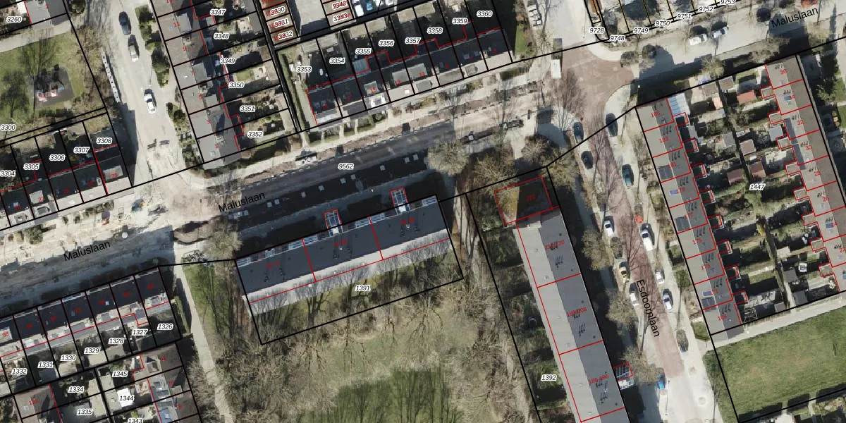 Maluslaan 42 is gelegen op kadastraal perceel GNG00L1391. Deze kadastrale aanduiding is uniek en wordt gebruikt door het Kadaster om eigendomsrechten en andere zakelijke rechten vast te leggen. Het perceel maakt onderdeel uit van de kadastrale gemeente Groningen.