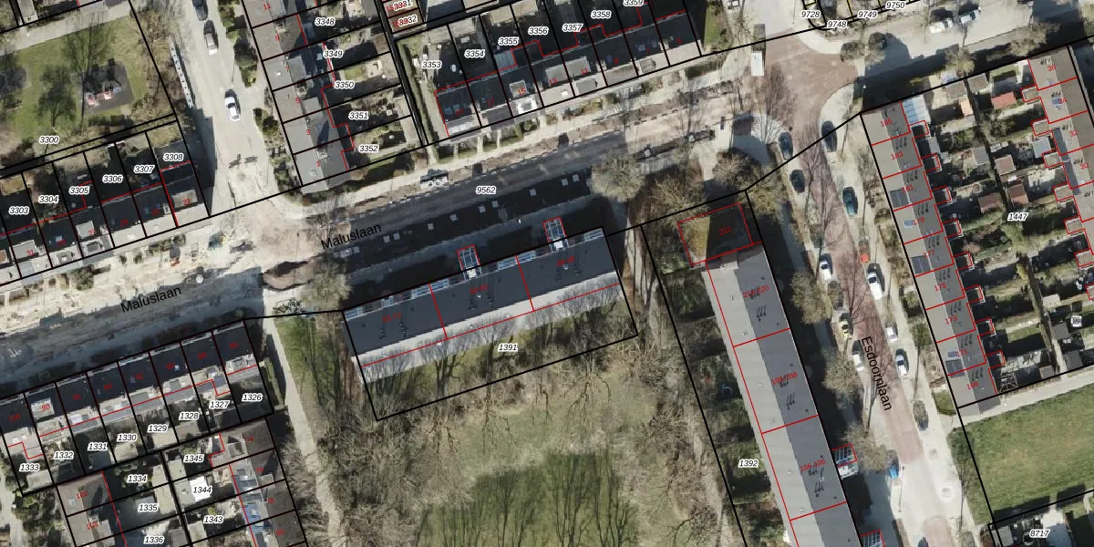 Maluslaan 44 is gelegen op kadastraal perceel GNG00L1391. Deze kadastrale aanduiding is uniek en wordt gebruikt door het Kadaster om eigendomsrechten en andere zakelijke rechten vast te leggen. Het perceel maakt onderdeel uit van de kadastrale gemeente Groningen.