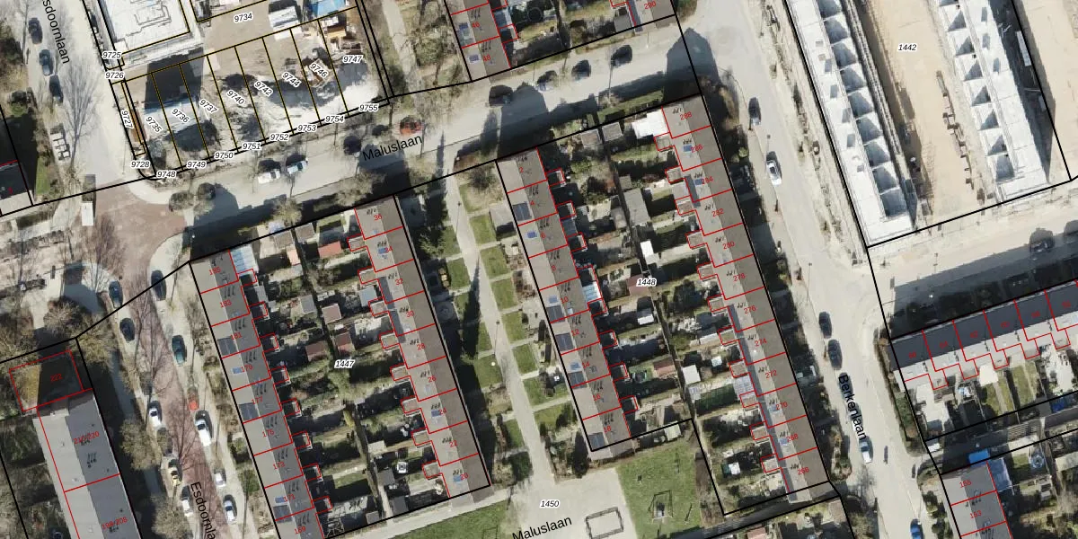 Maluslaan 8 is gelegen op kadastraal perceel GNG00L1448. Deze kadastrale aanduiding is uniek en wordt gebruikt door het Kadaster om eigendomsrechten en andere zakelijke rechten vast te leggen. Het perceel maakt onderdeel uit van de kadastrale gemeente Groningen.