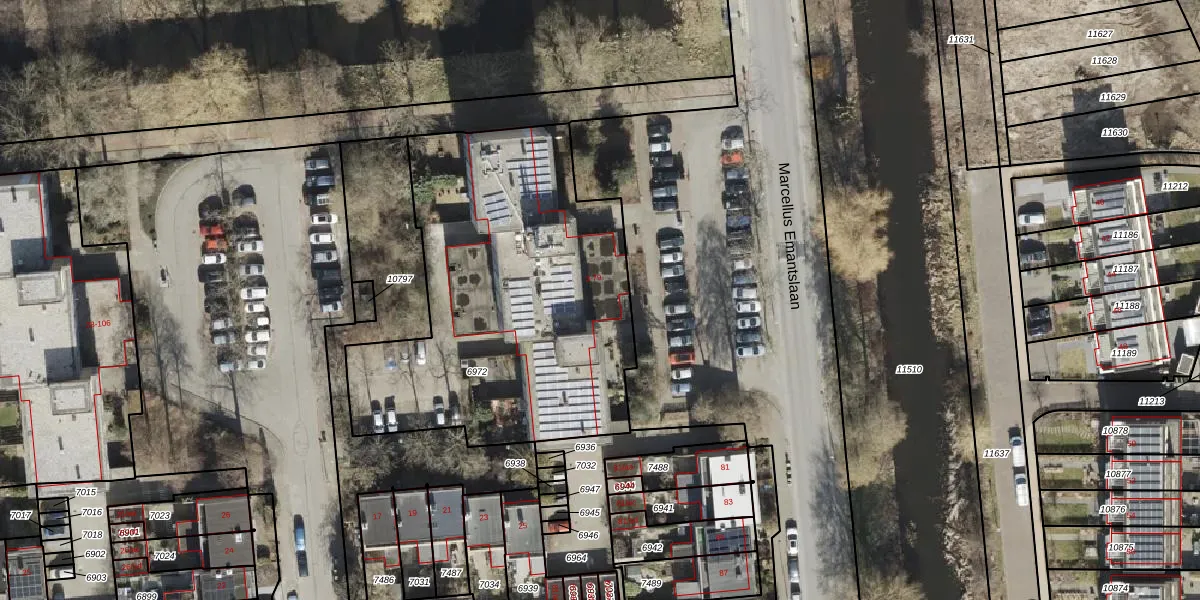 Marcellus Emantslaan 11 is gelegen op kadastraal perceel HMN02M6972. Deze kadastrale aanduiding is uniek en wordt gebruikt door het Kadaster om eigendomsrechten en andere zakelijke rechten vast te leggen. Het perceel maakt onderdeel uit van de kadastrale gemeente Helpman.