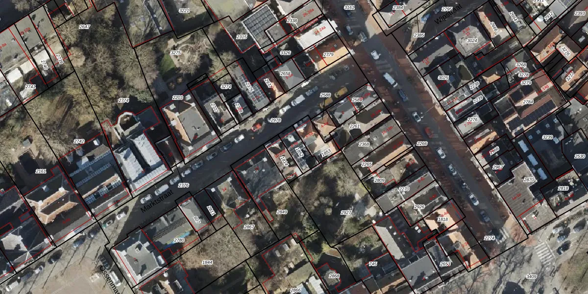 Het perceel waarop Marktstraat 8-c staat heeft een oppervlakte van 97 m². Dit is een klein perceel. De perceeloppervlakte wordt geregistreerd door het Kadaster. Gedetailleerde informatie over de maten van dit perceel kunt u vinden in het rapport Kadastrale kaart met maatvoering van Marktstraat 8-c.