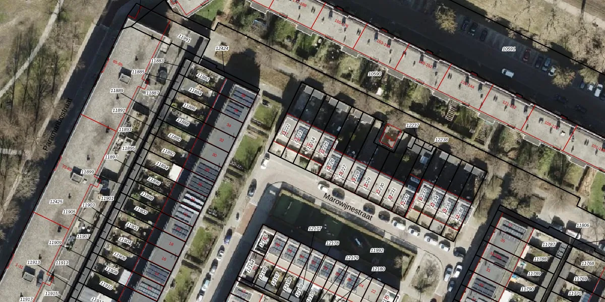 Het perceel waarop Marowijnestraat 103 staat heeft een oppervlakte van 117 m². Dit is een middelgroot perceel. De perceeloppervlakte wordt geregistreerd door het Kadaster. Gedetailleerde informatie over de maten van dit perceel kunt u vinden in het rapport Kadastrale kaart met maatvoering van Marowijnestraat 103.