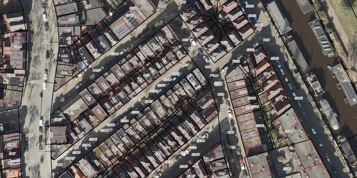 Het adres is gelegen op perceel 8955 in de sectie B en de kadastrale gemeente Groningen. De kadastrale aanduiding is aldus GNG00-B-8955. Het perceel is 57 m² groot. Dat is kleiner dan de gemiddelde perceeloppervlakte in Groningen, dat op 770,65 m² ligt. Het grootste perceel in de kadastrale gemeente is 31,8 ha. Het kleinste perceel heeft een oppervlakte van 0 m². Er zijn geen andere adressen aanwezig op het perceel. De laatste wijziging in het de Basisregistratie Kadaster (BRK) was op 31-07-2003.