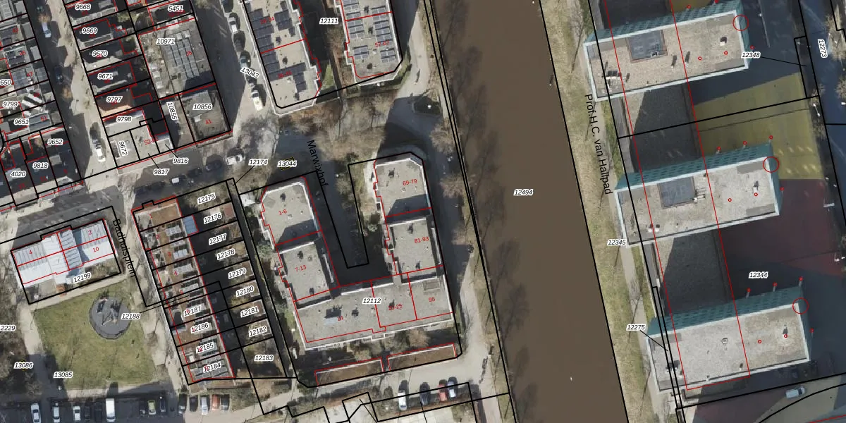 Het perceel waarop Marwixkade 81 staat heeft een oppervlakte van 1905 m². Dit is een zeer groot perceel. De perceeloppervlakte wordt geregistreerd door het Kadaster. Gedetailleerde informatie over de maten van dit perceel kunt u vinden in het rapport Kadastrale kaart met maatvoering van Marwixkade 81.