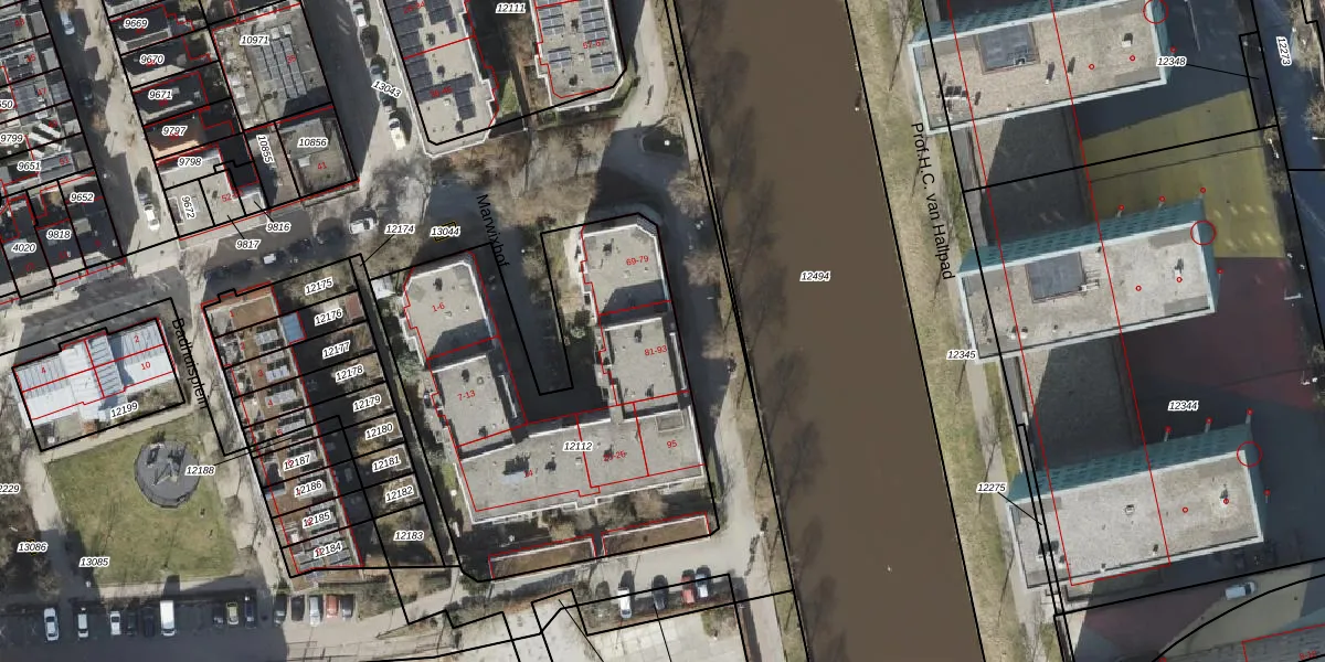 Het perceel waarop Marwixkade 83 staat heeft een oppervlakte van 1905 m². Dit is een zeer groot perceel. De perceeloppervlakte wordt geregistreerd door het Kadaster. Gedetailleerde informatie over de maten van dit perceel kunt u vinden in het rapport Kadastrale kaart met maatvoering van Marwixkade 83.