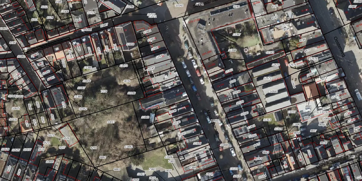 Het perceel waarop Mauritsstraat 13 staat heeft een oppervlakte van 385 m². Dit is een groot perceel. De perceeloppervlakte wordt geregistreerd door het Kadaster. Gedetailleerde informatie over de maten van dit perceel kunt u vinden in het rapport Kadastrale kaart met maatvoering van Mauritsstraat 13.