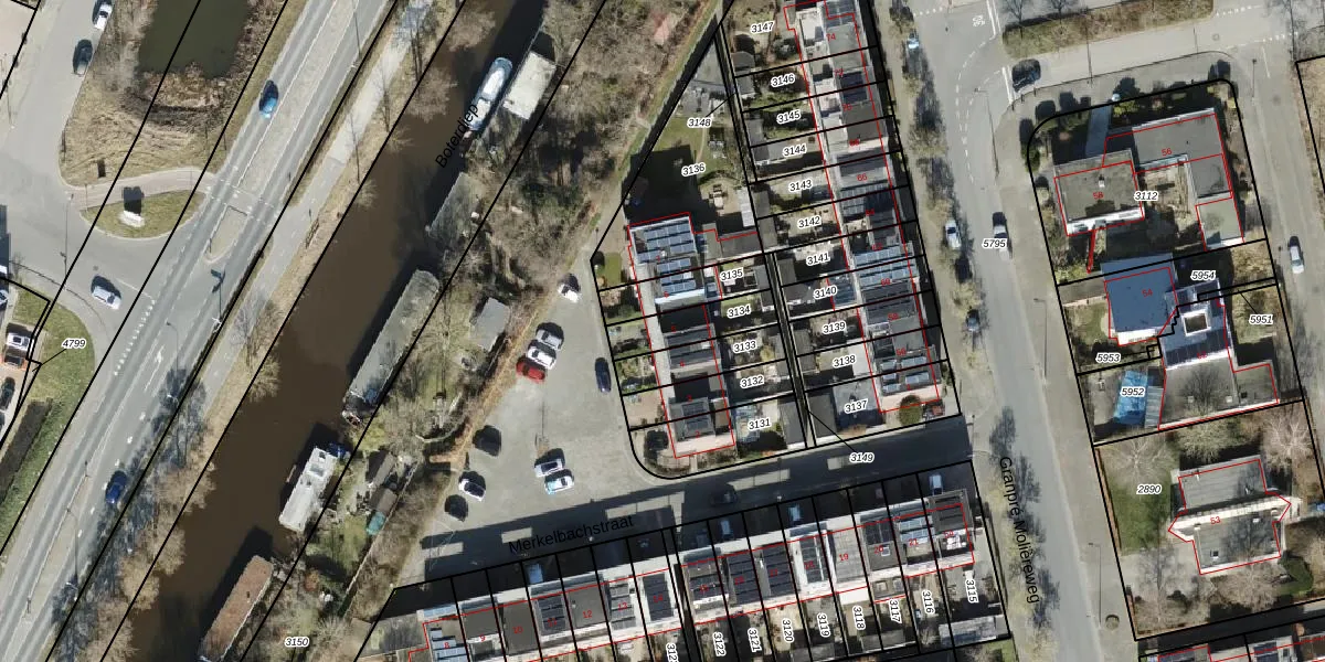 Merkelbachstraat 5 is gelegen op kadastraal perceel GNG01AB3134. Deze kadastrale aanduiding is uniek en wordt gebruikt door het Kadaster om eigendomsrechten en andere zakelijke rechten vast te leggen. Het perceel maakt onderdeel uit van de kadastrale gemeente Groningen.