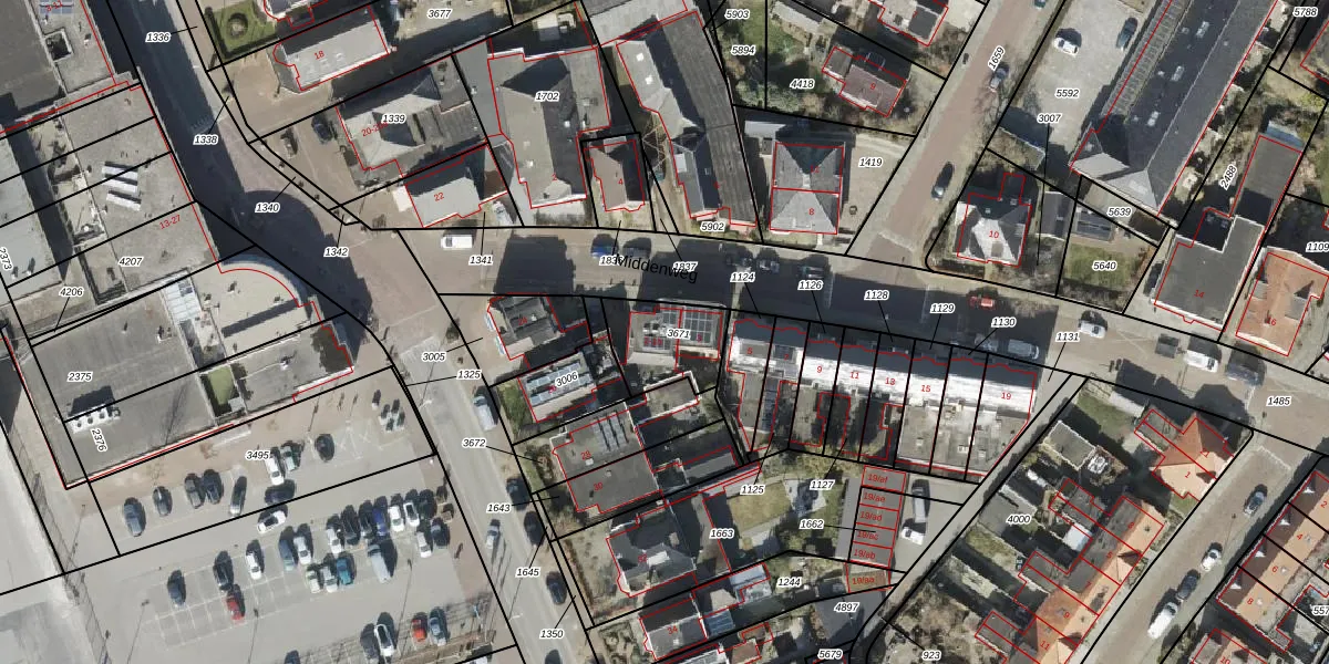 Middenweg 1-b is gelegen op kadastraal perceel HKK02C3671. Deze kadastrale aanduiding is uniek en wordt gebruikt door het Kadaster om eigendomsrechten en andere zakelijke rechten vast te leggen. Het perceel maakt onderdeel uit van de kadastrale gemeente Hoogkerk.