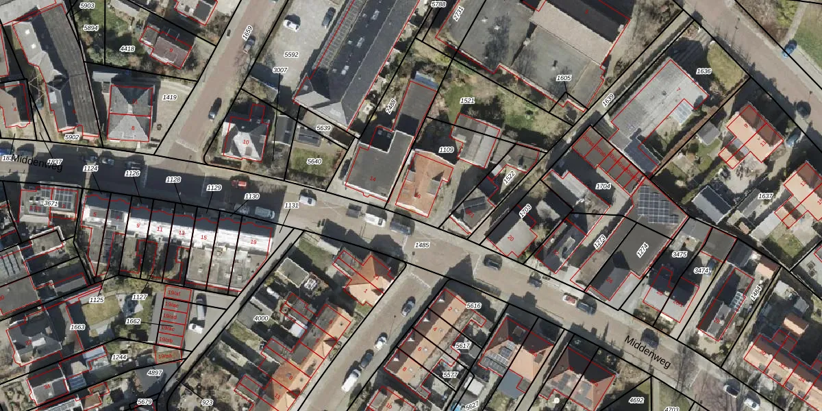 Het perceel waarop Middenweg 16 staat heeft een oppervlakte van 463 m². Dit is een groot perceel. De perceeloppervlakte wordt geregistreerd door het Kadaster. Gedetailleerde informatie over de maten van dit perceel kunt u vinden in het rapport Kadastrale kaart met maatvoering van Middenweg 16.