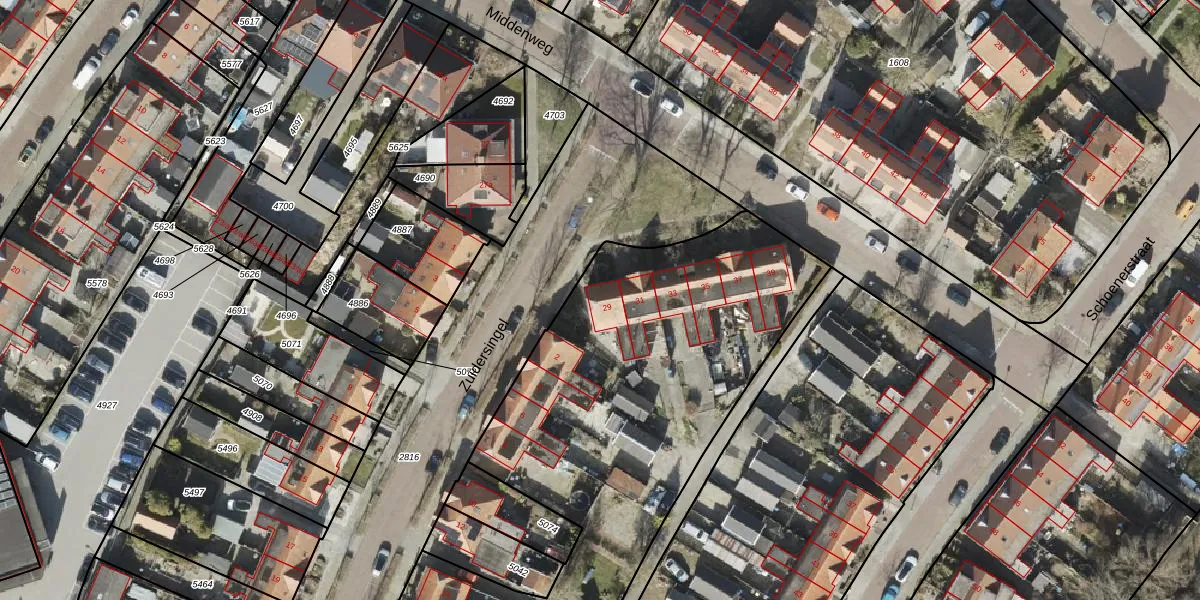 Het perceel waarop Middenweg 29 staat heeft een oppervlakte van 3235 m². Dit is een zeer groot perceel. De perceeloppervlakte wordt geregistreerd door het Kadaster. Gedetailleerde informatie over de maten van dit perceel kunt u vinden in het rapport Kadastrale kaart met maatvoering van Middenweg 29.