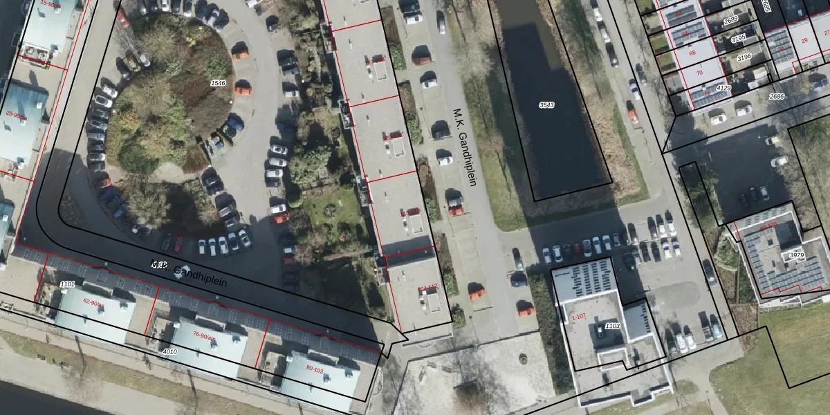 Het perceel waarop M.K. Gandhiplein 114 staat heeft een oppervlakte van 6841 m². Dit is een zeer groot perceel. De perceeloppervlakte wordt geregistreerd door het Kadaster. Gedetailleerde informatie over de maten van dit perceel kunt u vinden in het rapport Kadastrale kaart met maatvoering van M.K. Gandhiplein 114.