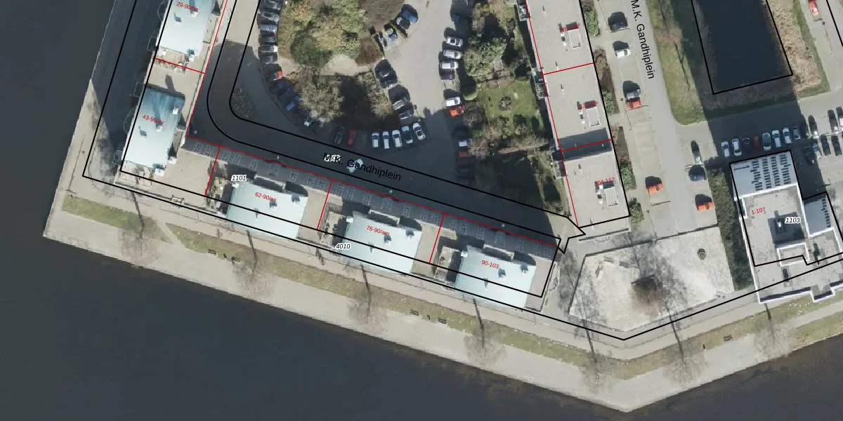 Het perceel waarop M.K. Gandhiplein 90-ag staat heeft een oppervlakte van 2975 m². Dit is een zeer groot perceel. De perceeloppervlakte wordt geregistreerd door het Kadaster. Gedetailleerde informatie over de maten van dit perceel kunt u vinden in het rapport Kadastrale kaart met maatvoering van M.K. Gandhiplein 90-ag.