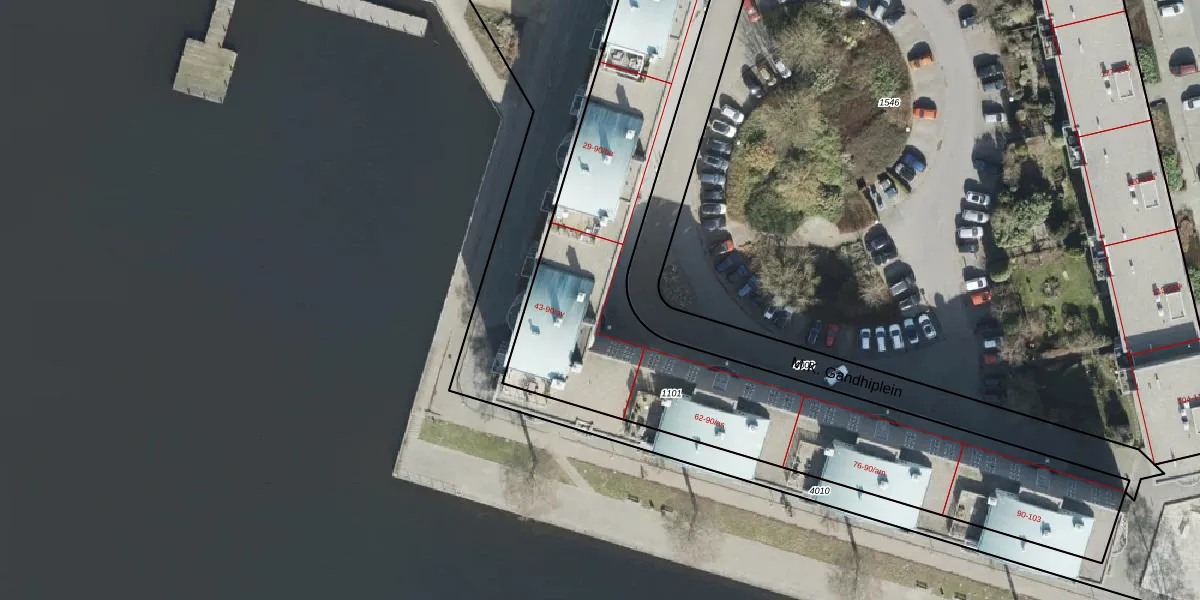 Het perceel waarop M.K. Gandhiplein 90-at staat heeft een oppervlakte van 2975 m². Dit is een zeer groot perceel. De perceeloppervlakte wordt geregistreerd door het Kadaster. Gedetailleerde informatie over de maten van dit perceel kunt u vinden in het rapport Kadastrale kaart met maatvoering van M.K. Gandhiplein 90-at.
