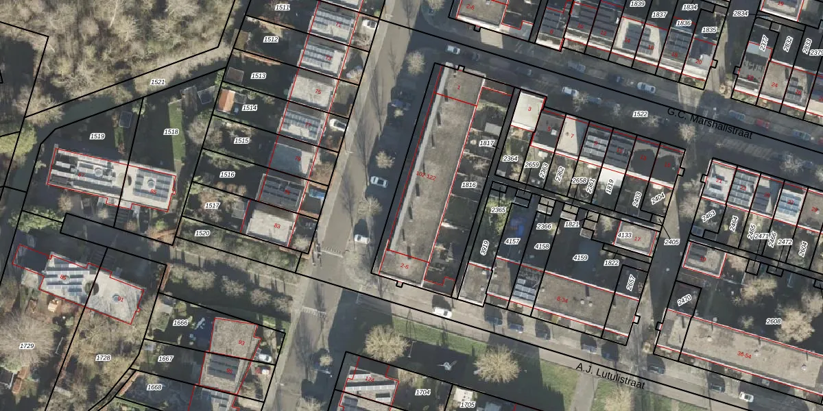 Het perceel waarop M.L. Kingstraat 106 staat heeft een oppervlakte van 1090 m². Dit is een zeer groot perceel. De perceeloppervlakte wordt geregistreerd door het Kadaster. Gedetailleerde informatie over de maten van dit perceel kunt u vinden in het rapport Kadastrale kaart met maatvoering van M.L. Kingstraat 106.