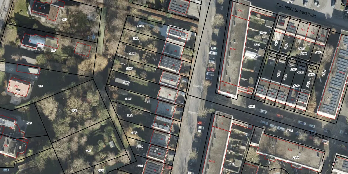 Gebruik de zoekbalk of klik op een perceel voor informatie over de adressen binnen dit perceel.