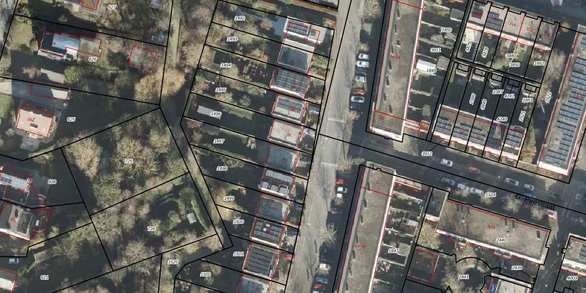 Gebruik de zoekbalk of klik op een perceel voor informatie over de adressen binnen dit perceel.